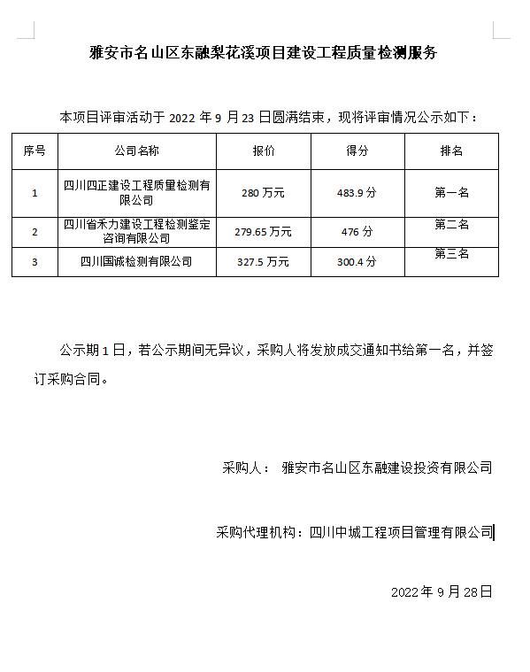 雅安市名山區(qū)東融梨花溪項目建設(shè)工程質(zhì)量檢測服務(wù)