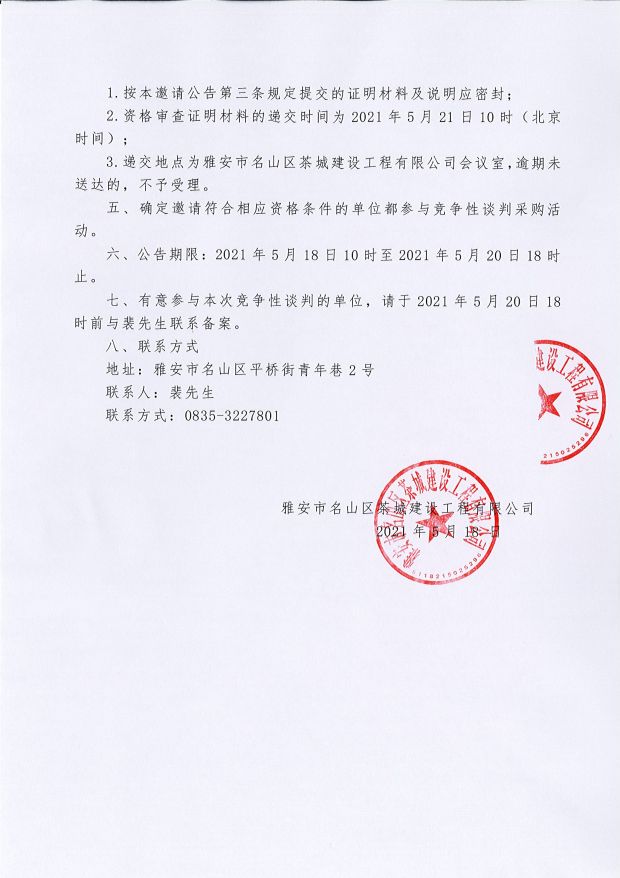 雅安市名山區(qū)茶城建設工程有限公司 關于公開招募2026年供應商入庫的公告...